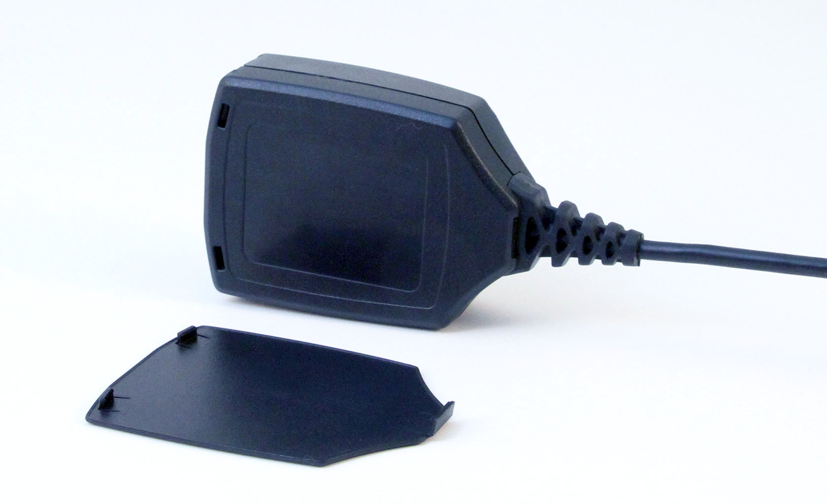 Military Range Finder, impact resistant up to 50G, ‘thick-glove’ operation including fine interpupillary distance adjustment, optics sealed and vibration mounted, no tool battery compartment, overall IP 67. Over-molding used both for additional impact protection and as a low cost gasket.