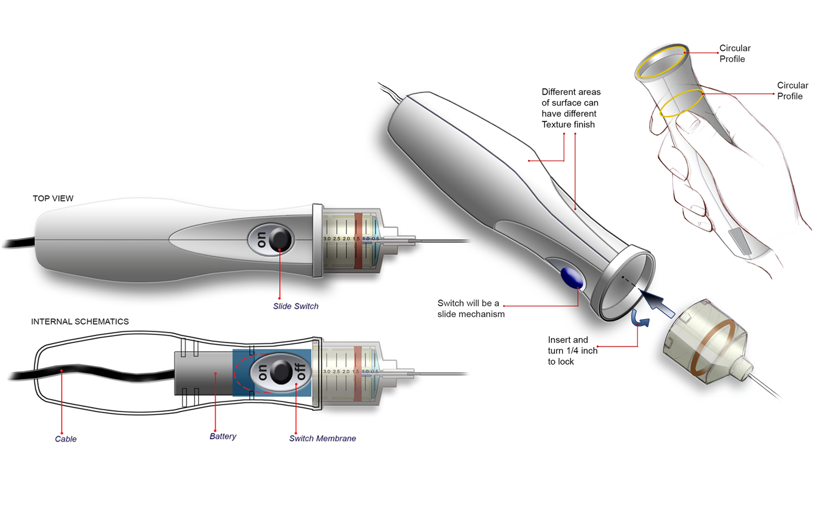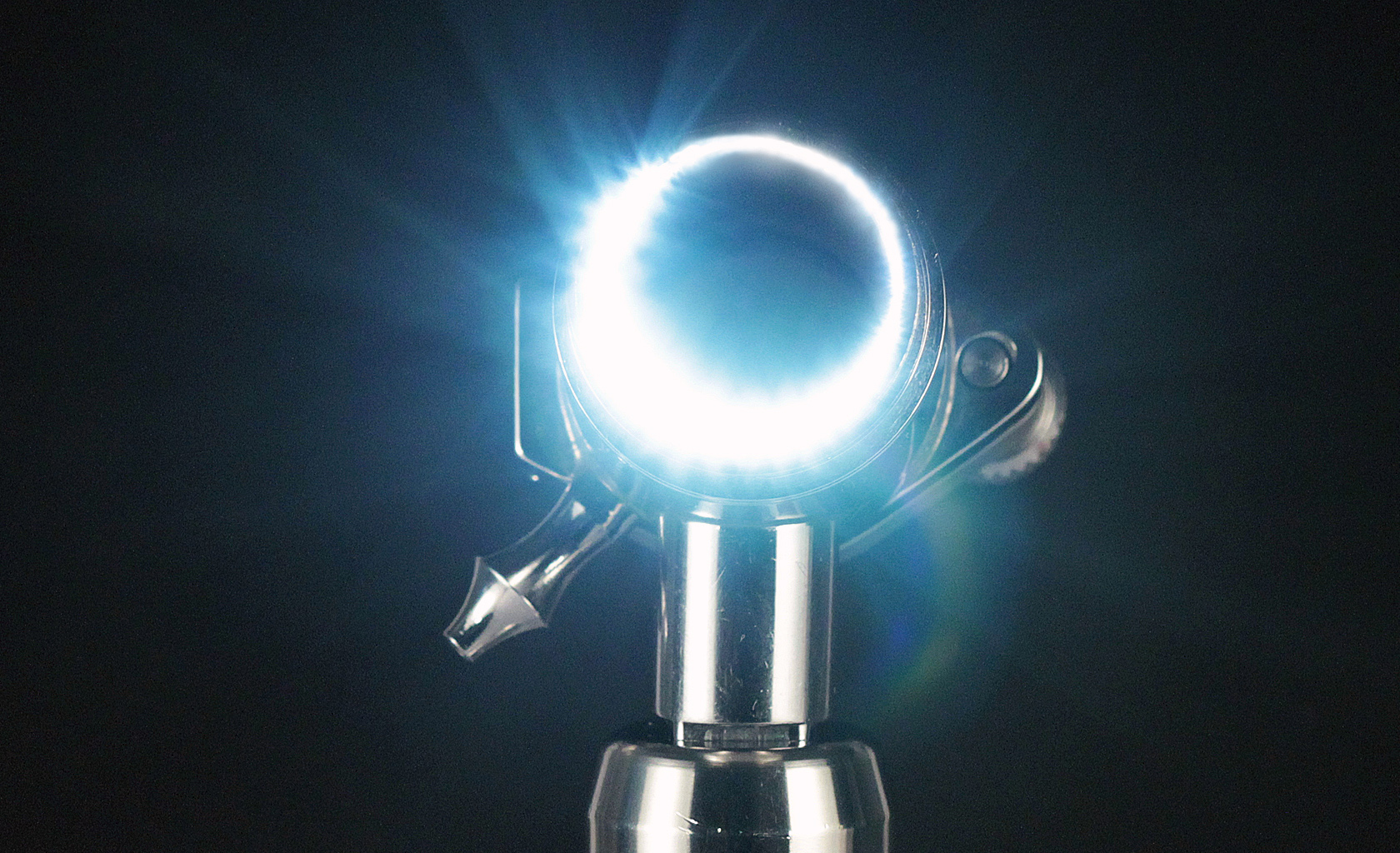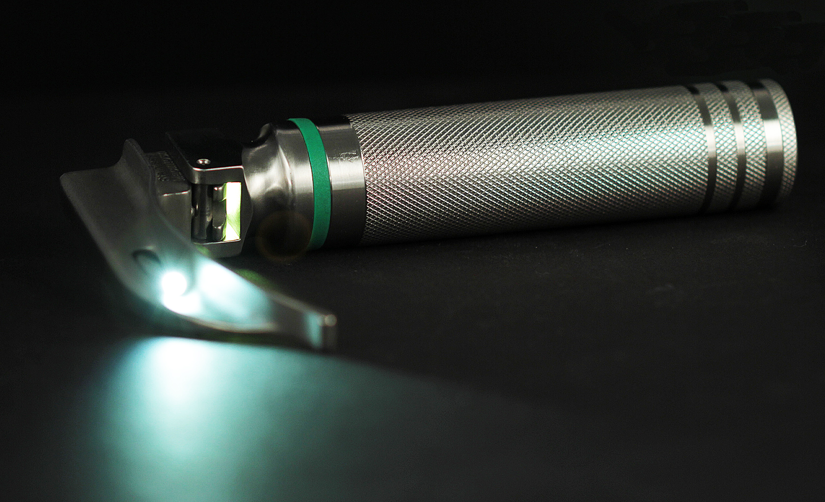 Proctoscope and Laryngoscope handle, steam sterilizable medical device with Alkaline or optional rechargeable battery, high intensity light, LED, universal stainless steel handle; modular design, accessory snap-on light activation provides intuitive operation.