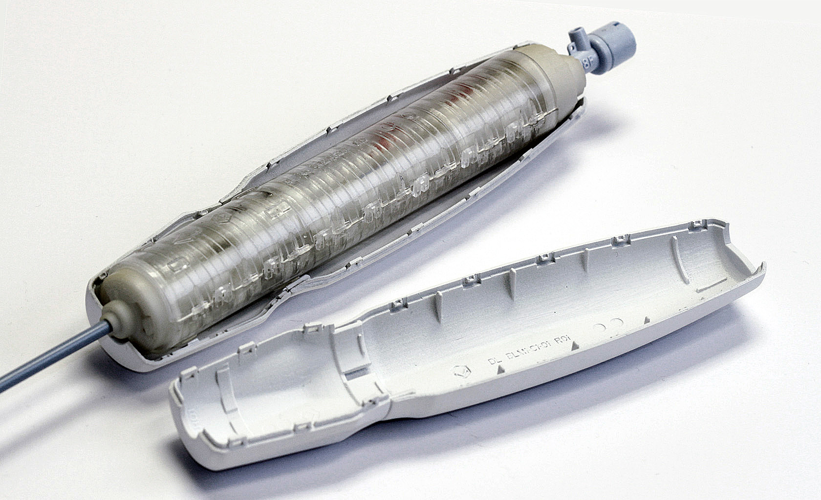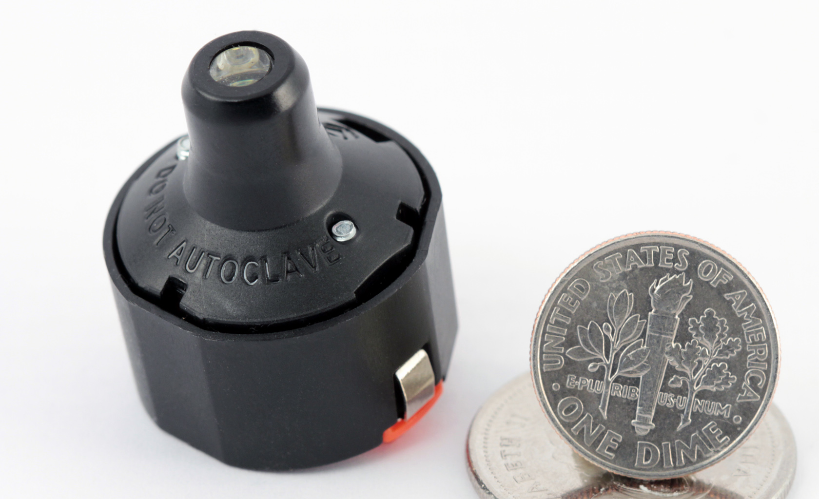 Miniature parts for high tech devices. Injection molded parts with micro snap on features for high volume production, miniature sheet metal electrical contacts and assembly features, TIR lens, springs etc. all going in one small sub assembly.